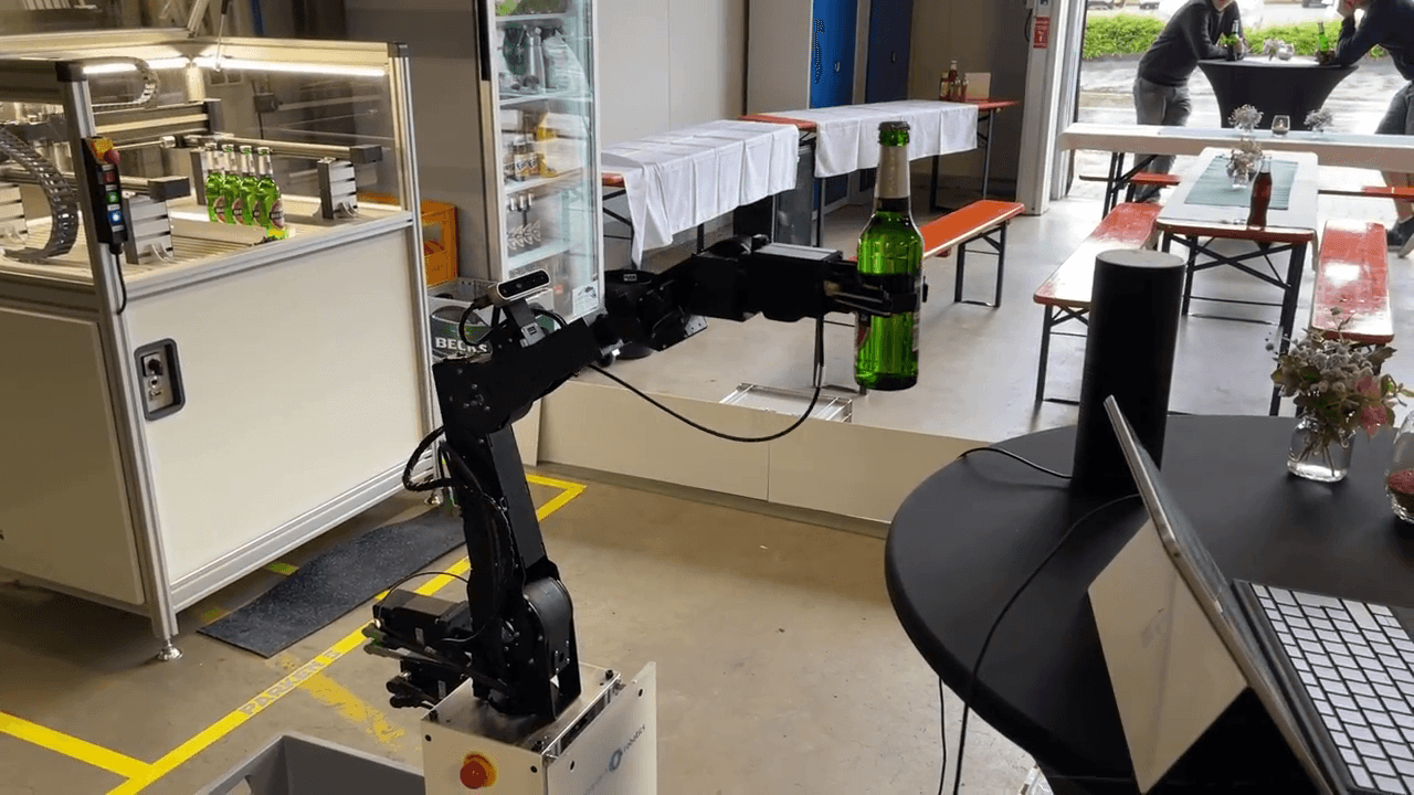 The system automates object retrieval tasks, such as fetching beverages or items, making it ideal for hospitality, events, and home environments.
