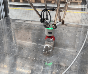 Efficient bottle sorting is essential for recycling workflows and production processes. In this customer application, a Delta robot, equipped with a Cobot pump and an integrated camera system, simulates automated sorting of deposit bottles. The camera enables the robot to visually recognize and identify the correct bottles. Once identified, the Delta robot picks up the bottles with the Cobot pump and places them accurately in their designated sorting area, demonstrating the potential of automation for repetitive and precise tasks.
