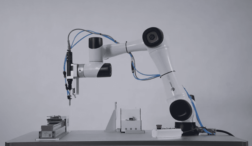 The DOBOT CR5 Demonstrates Dynamic Screw Assembly highlights its capability to automate screw fastening on components moving along a linear axis. The robot synchronizes with the shifting workpiece, applying consistent torque and ensuring precise positioning across multiple screw points. This dynamic interaction facilitates efficient assembly of parts with varying positions on transport systems. By reducing manual effort and improving cycle times, the system ensures consistent quality and flexibility, making it ideal for modern production lines.