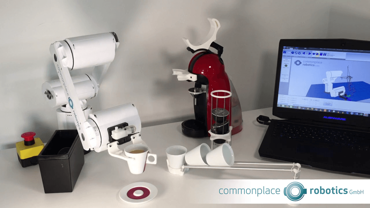 The education robot is a cost-effective 4-axis system designed specifically for universities, schools, and institutes, enabling students to explore robotics without incurring high expenses. Its compact design and excellent price-performance ratio make it ideal for hands-on learning and research. Lightweight and versatile, the robot can handle tasks like preparing espresso at trade fairs, showcasing its functionality while drawing attention to its applications.