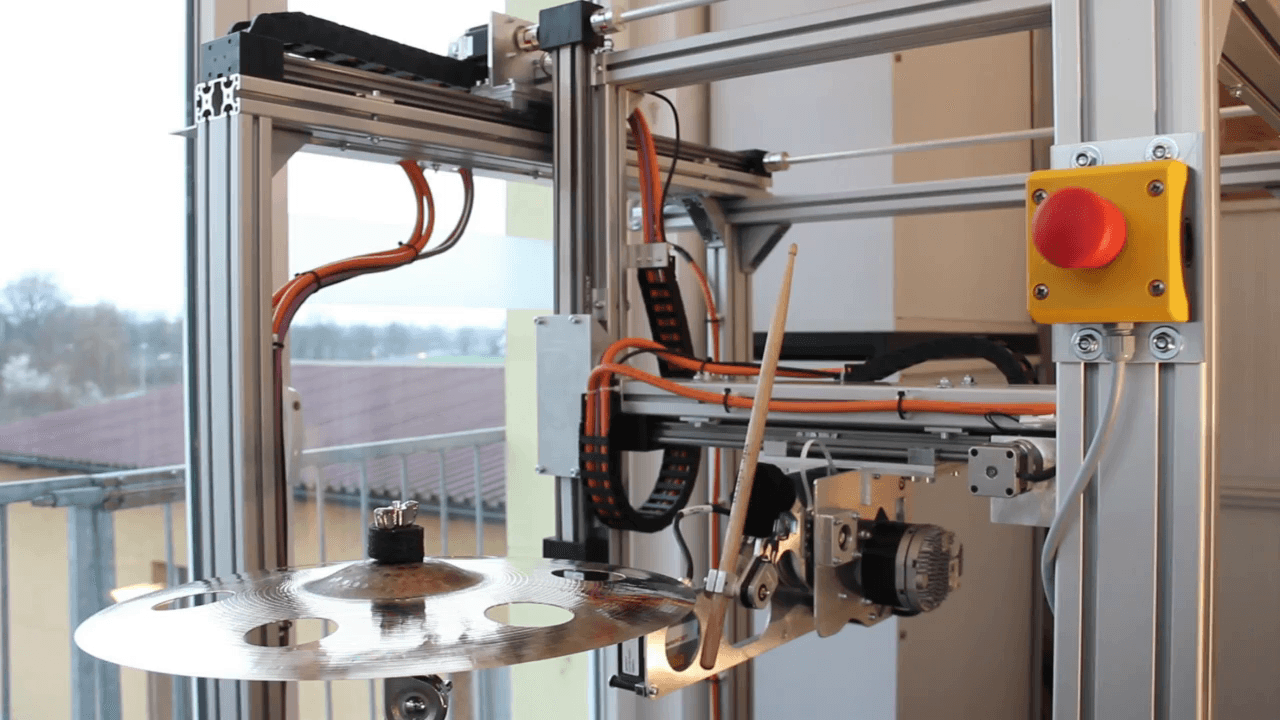The robot automates cymbal testing and sound recording, generating audio samples for online product comparisons by consistently striking predefined points with uniform force.