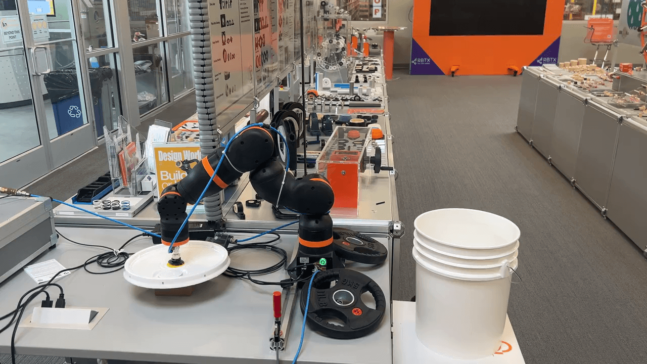 This application, showcased in the Customer Testing Area at igus Inc., highlights the precision of the igus ReBeL cobot in a real-world customer test. Equipped with a Schmalz suction cup, the collaborative robot stacks bucket lids used in the food industry. The cobot uses suction to securely pick up the lids and precisely stack them, demonstrating its ability to handle repetitive tasks with accuracy and consistency—critical for food industry applications.