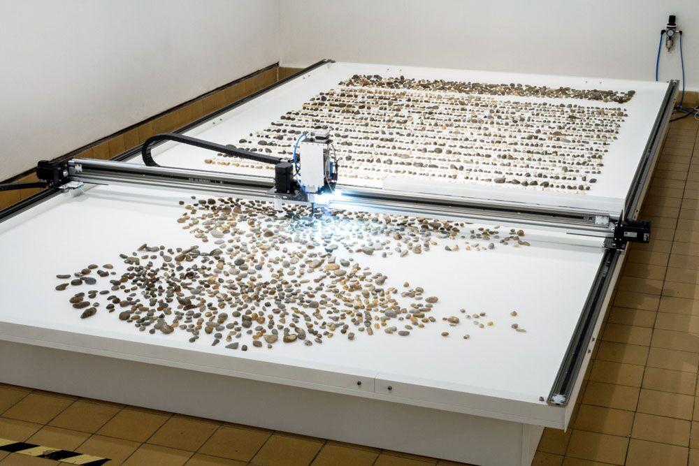 The flat linear robot automates sorting tasks, such as classifying stones or other materials based on user-defined parameters, ideal for manufacturing, quality control, or material handling.