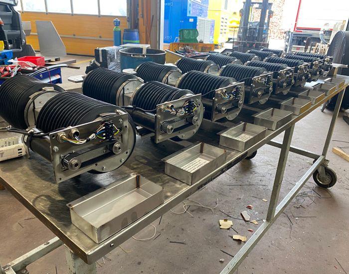 Customizable Positioning: drylin axles adapt to tunnel curvature for uniform coating.
